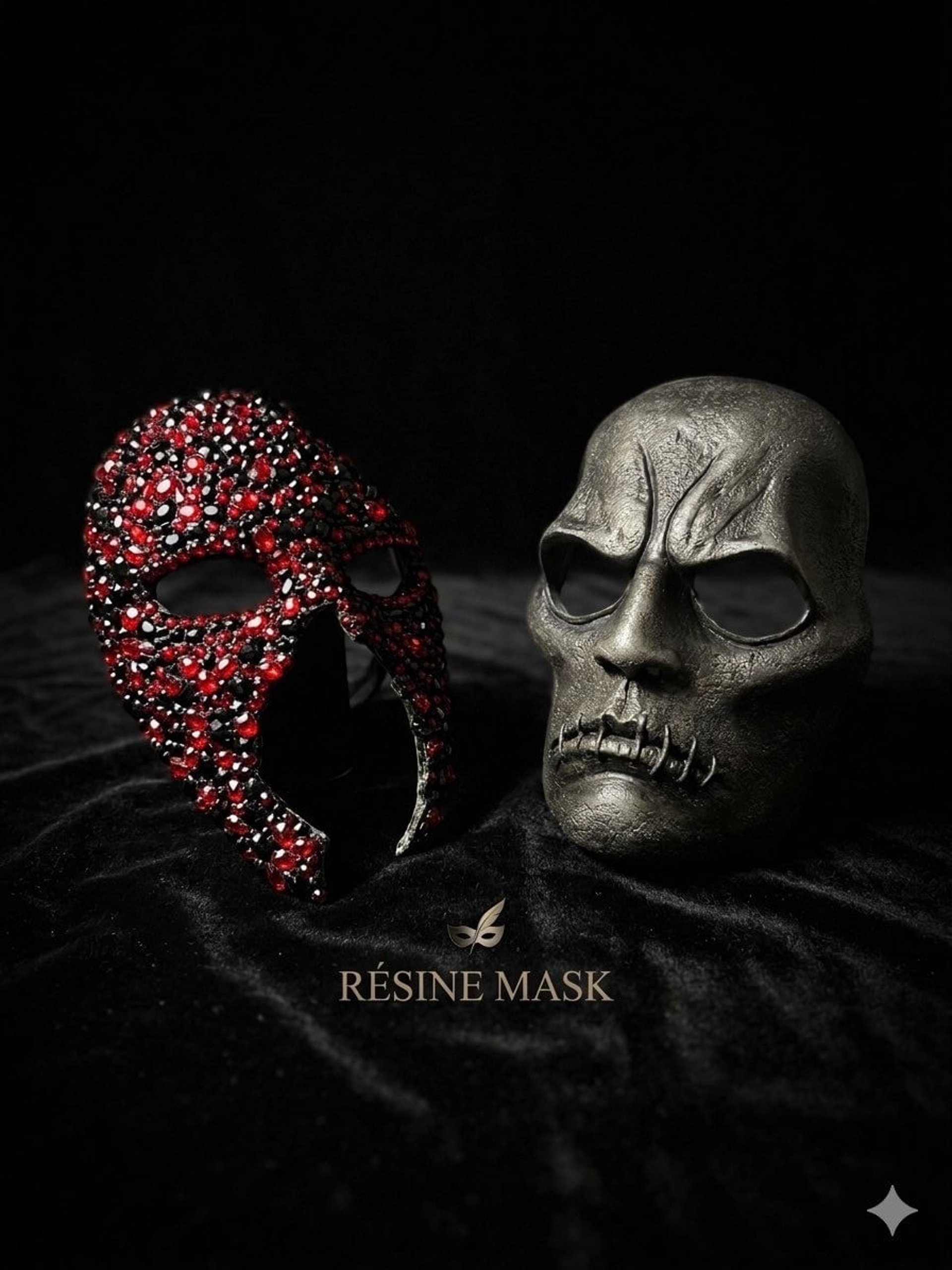 Découvrez l’élégance, la précision artisanale et le design unique de nos masques en résine.